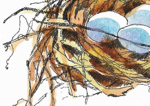 One way is to do a pen and ink drawing , then add the watercolor on top of the drawing. In this case, you must first make sure that the ink is waterproof. I like to use traditional India Ink with a dip pen. But there are also several waterproof, fadeproof pens that will work well for this. The ones that have worked best for me are: RoseArt Superview, Uniball Deluxe, Uniball Vision Elite. I have tested these in the direct sunlight of a south-facing studio window and they have held up without any fading for at least ten years. Some that have NOT worked well are the Zeb Roller and the Sharpie Fine Point.