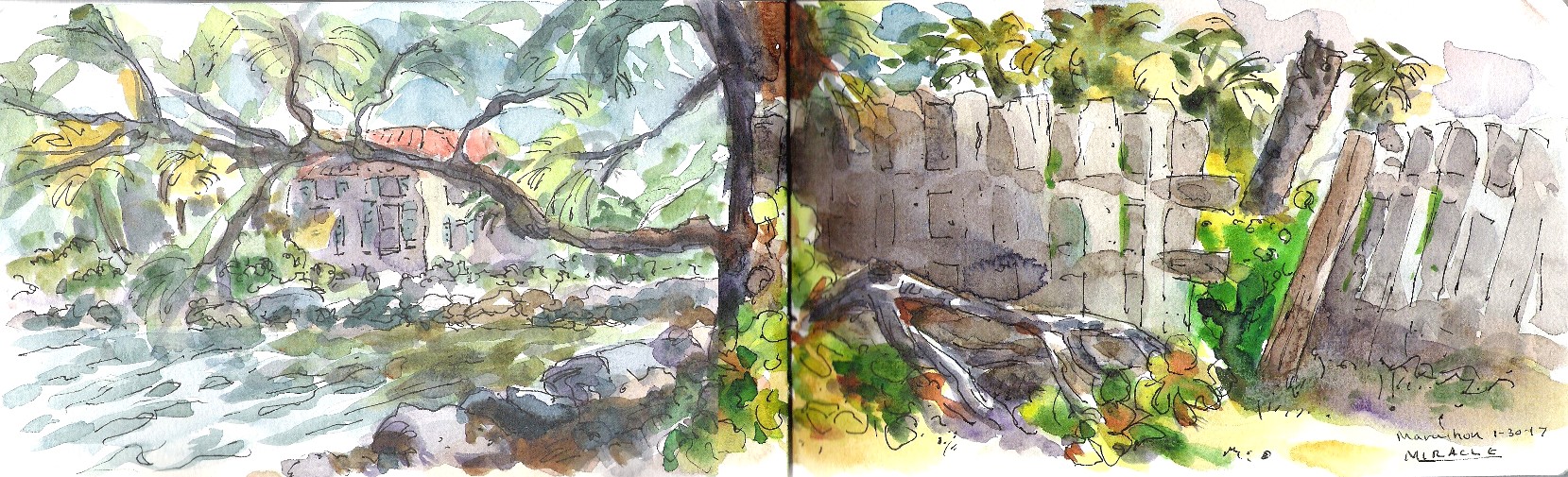 The second painting was from a small park in the heart of Marathon. I liked the way the house across the inlet was framed by the pine tree. I took liberties to emphasize the house, actually more than I could really see it. Oh, well, that’s what artists do. Enjoy