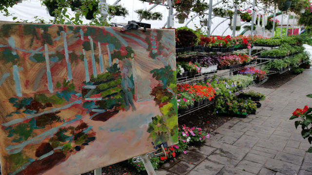 Plein Air Painting at the garden center. Oil on canvas, 12 x 16. Kit Miracle