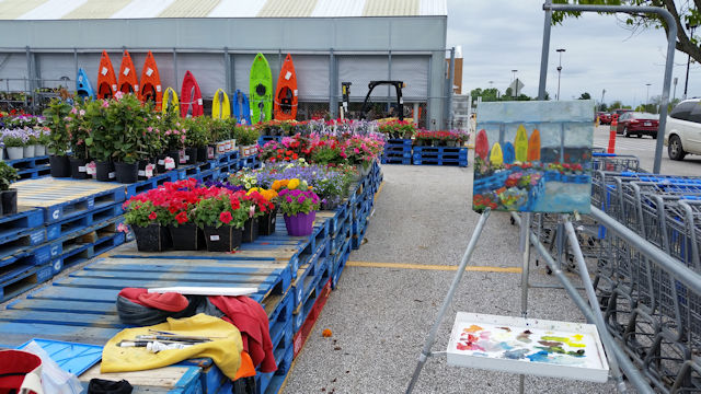 Painting at the garden center at Walmart on the day before Mother’s Day. Kit Miracle