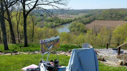 This is where the magic happens. The easel for oil painting. The flat table for watercolor and some drawing. Everything I need within a hand’s reach.