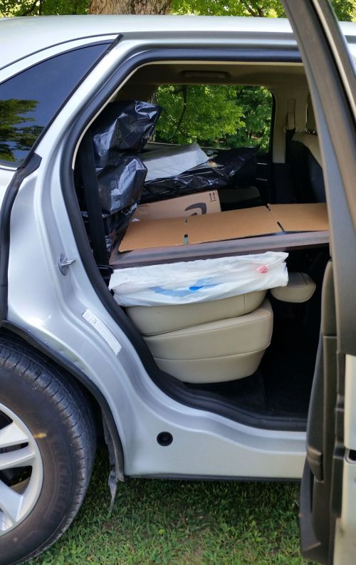 Car number 2. Make sure everything is tight. I used to have a full-size van and could have gotten everything into one vehicle, so it’s a bit more challenging now.