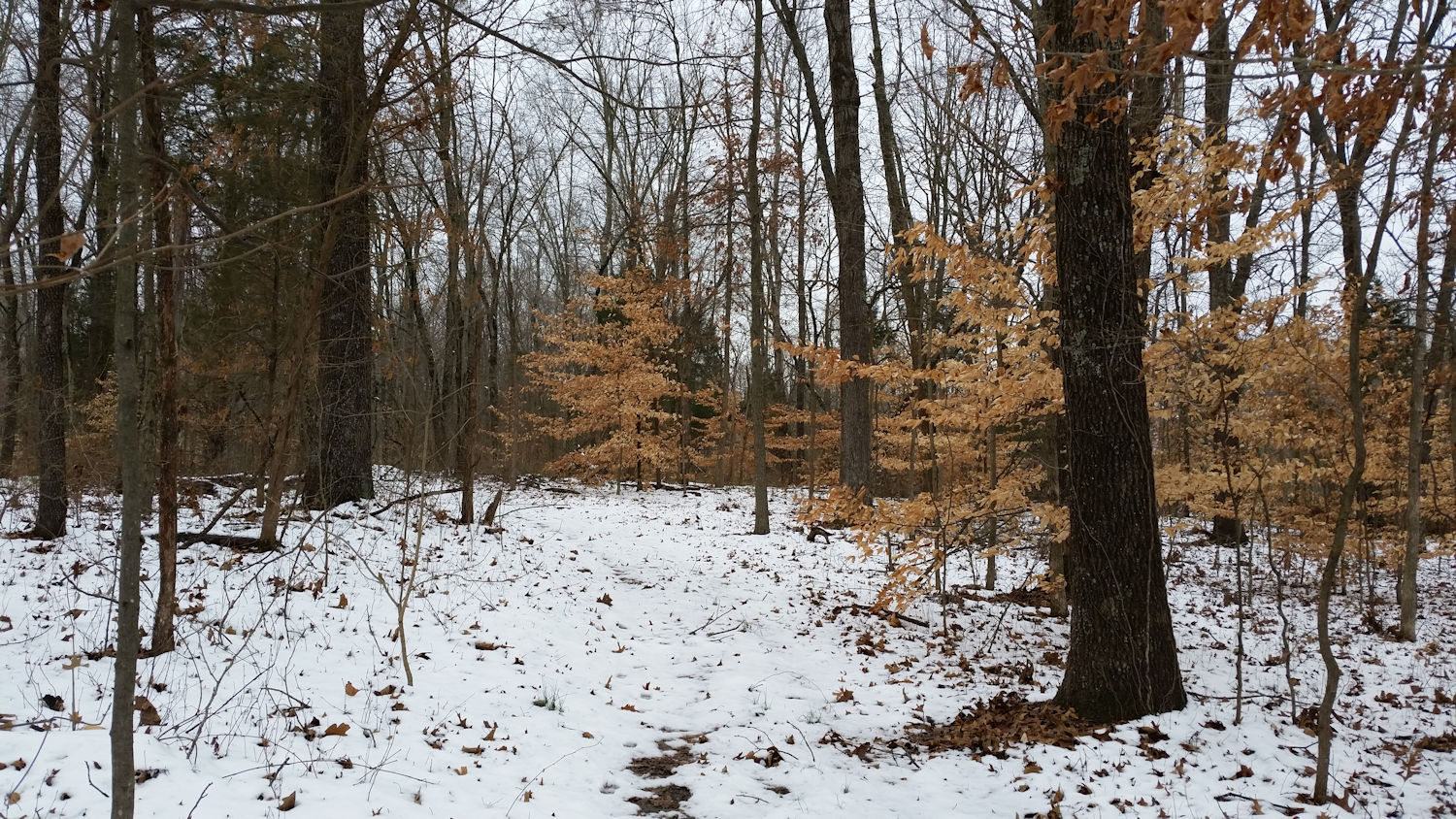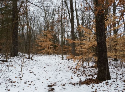 We haven’t had much snow here yet this winter but we had a couple of inches a few weeks ago. I took the dog for a walk in the woods and the snow made the beeches really stand out. Beech trees are native to this part of the country but we don’t have many on our property. They make pretty good firewood and were chopped down long ago (before our time). However, we’ve noticed a resurgence of beech trees since we moved here over thirty years ago. They hold their leaves over the winter so the orangey color contrasts nicely with the snow.