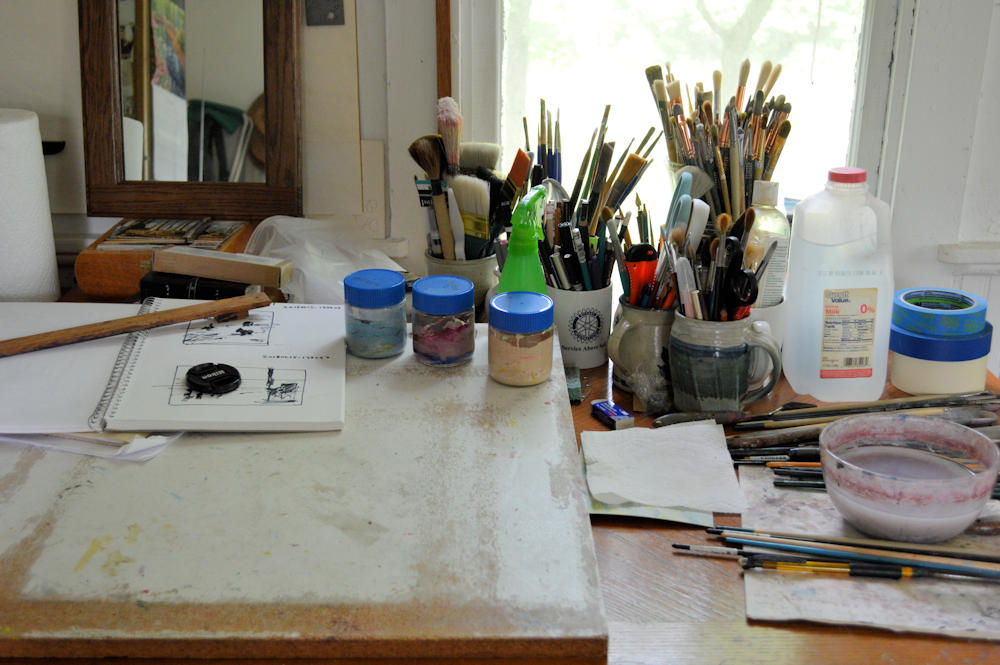 It is important to have good lighting in your studio. I discovered many years ago that if I worked under a warm light, then my paintings turned out too cool. Now I usually use a cool light which mimics north light which means that I paint a bit warmer to compensate. If you are unhappy with your current work space illumination, you might want to try out some of these suggestions.
