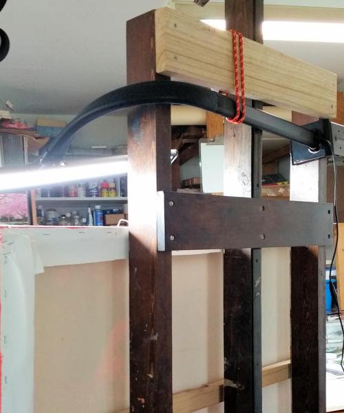 The Phive LED architectural light attached to my studio. The first part of the lamp is stiff and only the top part is articulated. I could not find a way to attach it to my easel without the actual lamp getting in the way.