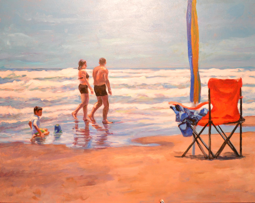 Most of my painting in the past few years has been done with a clamp-on gooseneck lamp. It has a daylight bulb. Unfortunately, it sometimes causes “hot” spots on the paintings (uneven lighting). I’ve tried placing it behind me but then I’m working in my shadow. This is especially a problem when working on larger paintings.