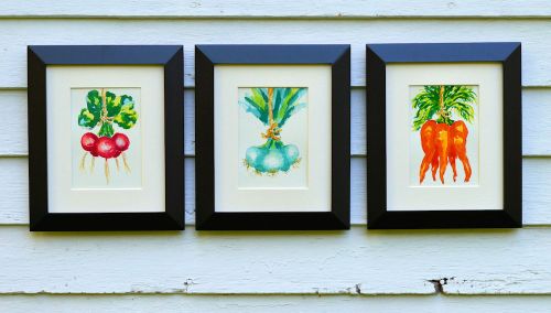 I am unusual in that I actually like fluorescent lighting (most people don’t). I think it provides good light and is great for working, such as, cutting mats or assembling frames. I have two standard light fixtures in my studio but have opted to pair a cool bulb with a warm (daylight) bulb. Although this is difficult to see in the photo, it provides a nice balanced illumination for the studio. However, if I’m working on a still life, I want aimed lighting without the overhead fluorescents.
