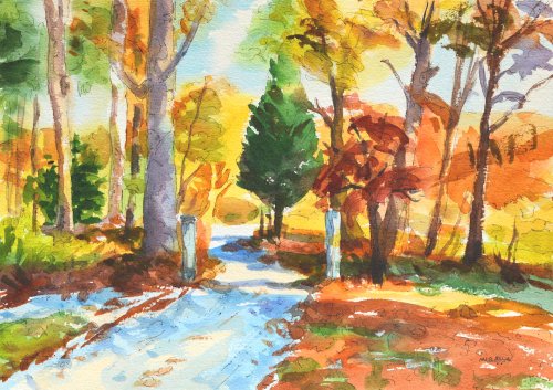 I have had many wonderful experiences over the years but a few stand out. There was the singing garbage man in Ann Arbor. And the time I had a water main leak IN my booth….at St. James, of course. The time a big storm was coming and I had packed up my artwork and had just taken the weights off my tent when a wind tipped it up and over….while I was standing in the booth! The time a couple consulted and bought my show piece (largest painting). The little boy who would attend the fair every year just to talk to a real artist; I watched him grow up over the years. The couple who invited a few of us artists to their home at the end of the day for a home-cooked meal. That was very welcomed.