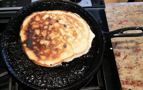 Blueberry pancake on the ancient family griddle.