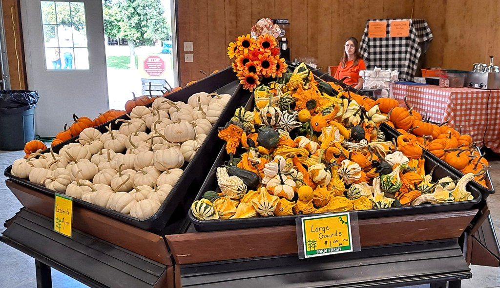 Oh, yeah. Loads more things besides pumpkins to get us in the mood. Apple cinnamon donuts, cider, candy apples, and lots of decorating items.