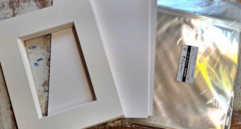 Some of the tiniest paintings that I have created are 2 x 2 and 2 x 3. These are cute and fun but I have to specially cut the mats. Unless I want to order a bunch of ready-mades, I just don’t do that too often anymore.