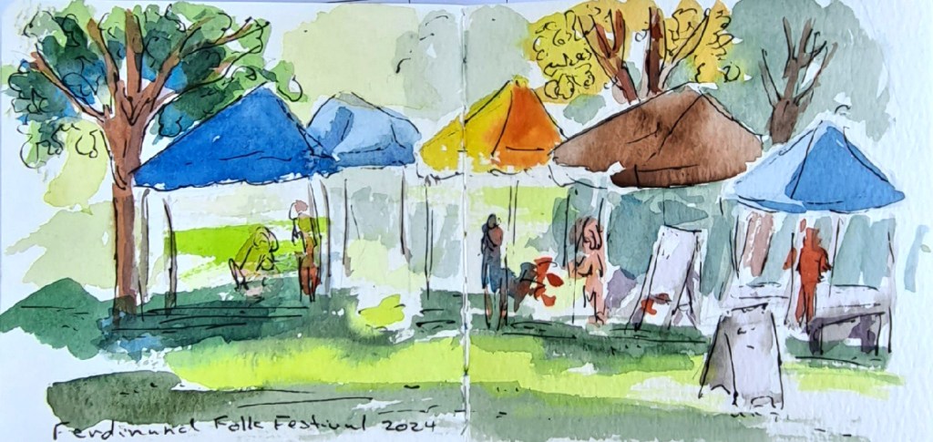 But it also afforded me a few hours to sketch the people and entertainers at the festival. Fun to experience that. But also fun to know that I don’t have to do this any more. And I had a good opportunity to people watch. With my quick sketch tools.