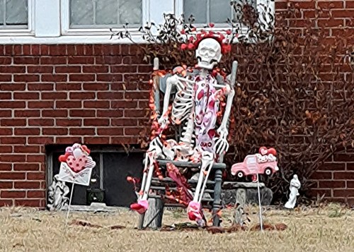 Sometimes, it’s my observation of the unique or ironic.  In this case, it was a skeleton in a lawn chair in the front yard of a house that I pass sometimes.  Mr. Skeleton has been in this chair at least since last Halloween.  I was amused to see that his costume has been updated to celebrate Valentine’s Day.  I wonder if they do Easter next?  I’ll have to drive by then.