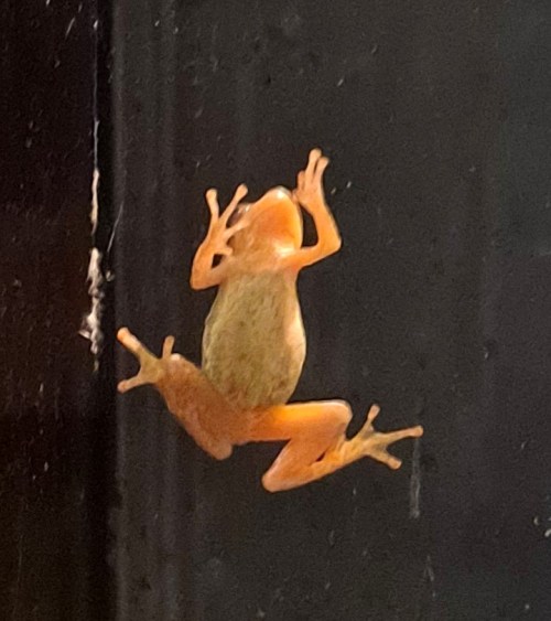 This cute little tree frog wanted in, or at least was seeking shelter.
