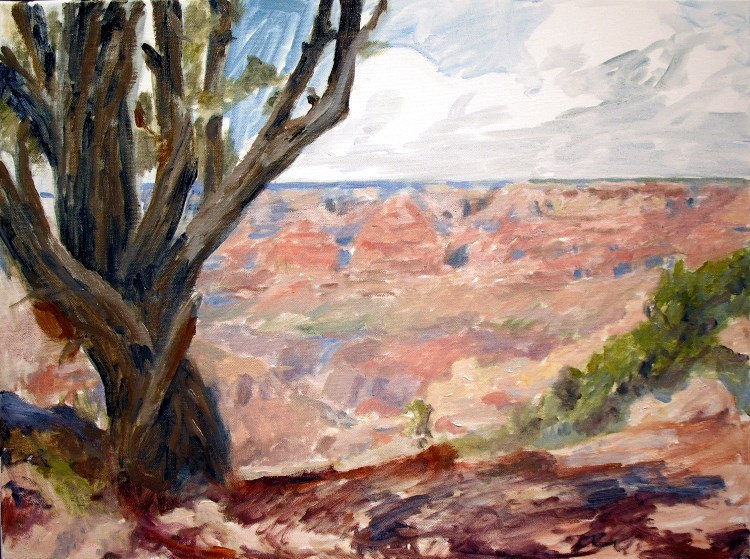 I had a fabulous time visiting the Grand Canyon last month for the first time. I fell in love with the place. The view constantly changes with the time of day and weather. This is a view from Moran Point overlook. I loved the gnarly old trees which look as if they were born old. I could paint in the Grand Canyon for a hundred years and still not run out of subjects to paint.