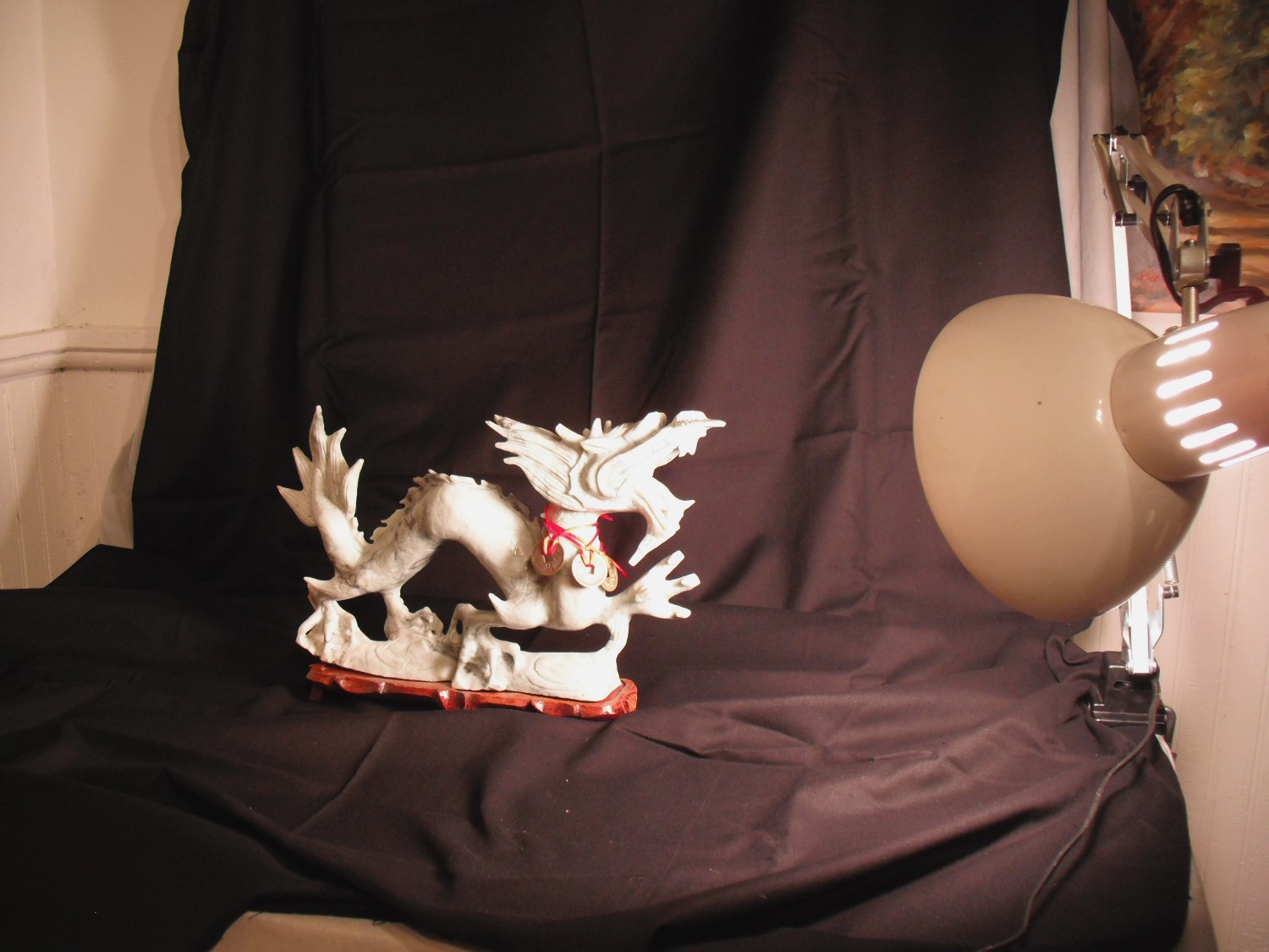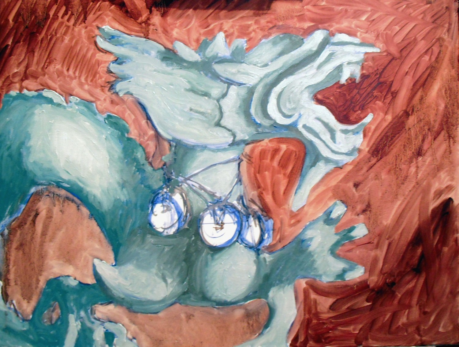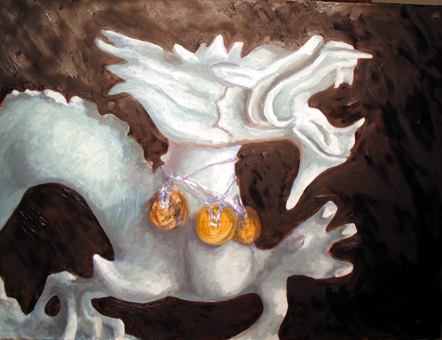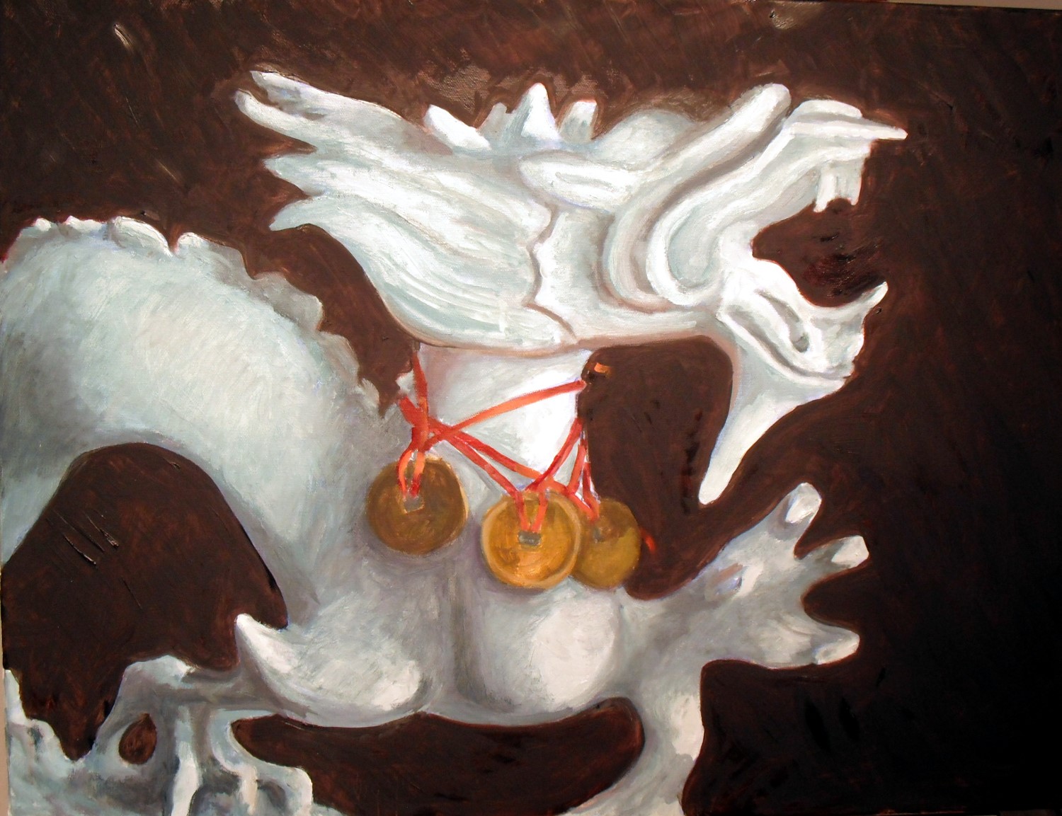 This painting took a bit longer than I anticipated. In the Lucky Red series, this is a different jade dragon. Compare it to Lucky Red #2. I chose the stark background to emphasize the overbearing attitude of the dragon.