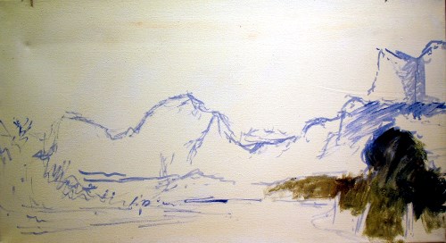 This painting is oil on canvas, 15 by 27. A slightly unusual size but it works for this landscape.