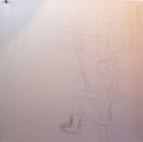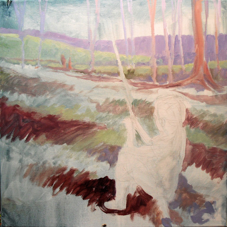 Here are the original photos which you can see do not depict the scene exactly in either one of them (or the many other photos that I took.) I am only going to present the set of steps for the first painting, The Huntress I, but both were painted at the same time, switching between the two works.
