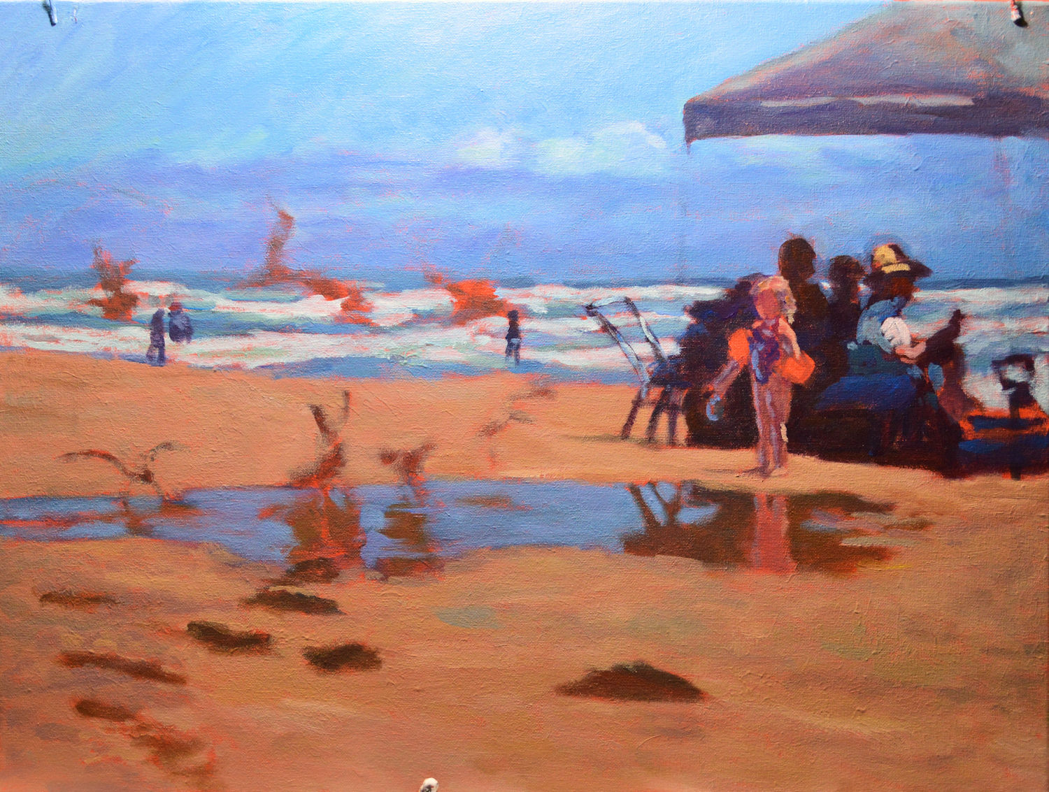 I was looking through some old photographs for subjects to paint which I haven’t visited for awhile and came across the inspiration for this painting. Sometimes the subject doesn’t grab me for several years until I revisit the pictures but this was only from last summer. I love the beach scenes by Sargent, Sorolla and Zorn, particularly the ones involving children.