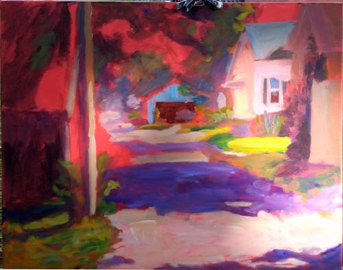 Weather can be a factor. I have painted in the rain either under the gate of my car or under an overhanging porch. If it’s windy, you definitely want to anchor your easel with some bungees and your backpack. If you’re painting in the snow, take some hand-warmers, scarves, and a hot beverage. You can even paint in your car and make your steering wheel into a prop for your work.