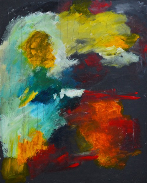 I then painted the figure in grisaille, those greyish tones. Later working overall with adding some detail to the background. More paint on the primary figure. Although I had some reference photos to work from, this doesn’t really represent the situation. I painted very loosely, adding more to both the figure and the background until I was satisfied.