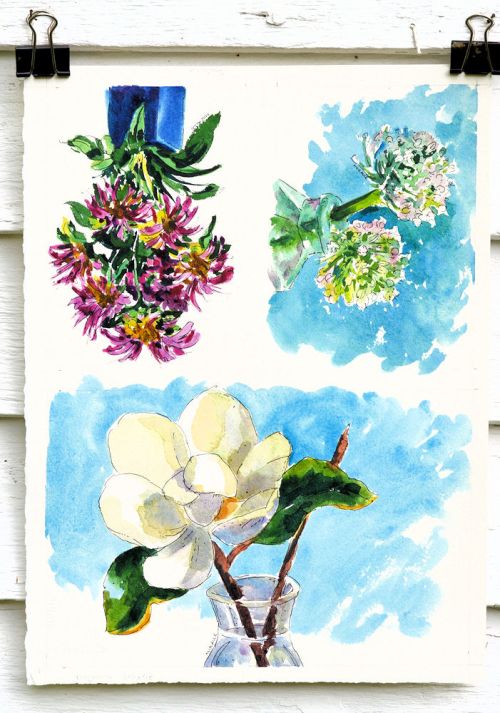 I usually use a small sketchbook to make thumbnail sketches but sometimes I’ll paint in a watercolor notebook. It’s important to be flexible and not get bummed out if you forget something. I have a friend who paints with sticks (and the results are amazing).