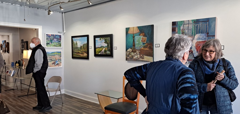 My show at the Harrison County Arts in Corydon has been very successful. Last week I gave a gallery talk which was well-received. The reporter Judy Cato came out twice. Once to interview me and another time to bring her friend Lorraine, the photographer. And then this coming week I get to pick it up the show.