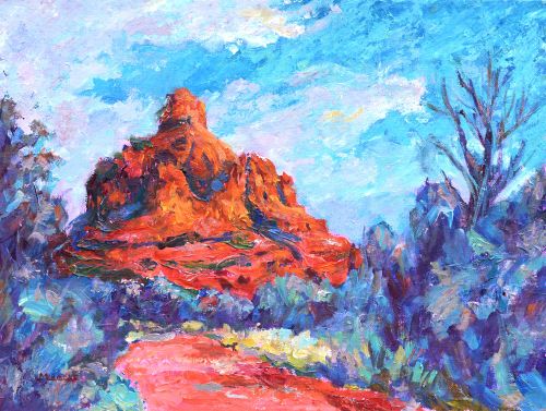 Cathedral Rock, original painting, 12 x 16, impasto, Kit Miracle