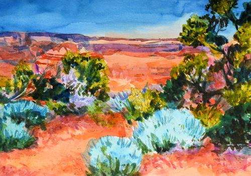 Grand Canyon Vista III, watercolor, pen and ink, 13.5 x 9.5, Kit Miracle