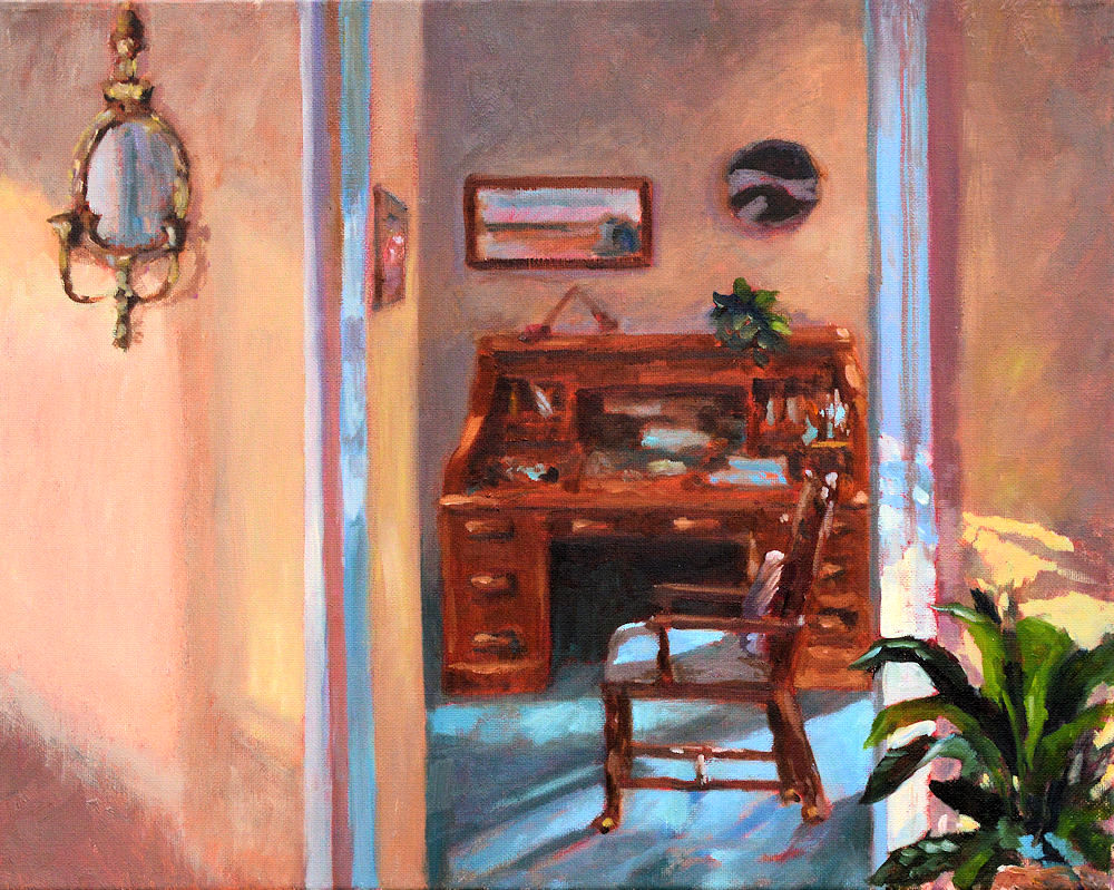 Here is an interior view using compositional framing.  The doorway, chair and plant, lead the eye through the doorway to the desk in the distance.