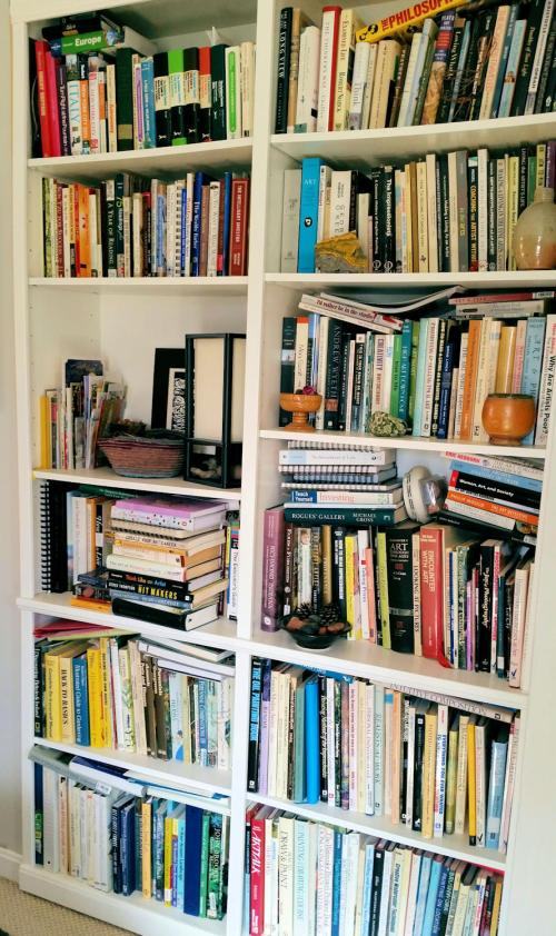 One of my goals last year was to not buy any books. That doesn’t make the top ten in resolutions, but is certainly needs consideration in my case. I have a wide range of interests and love books of all kinds. But…they do take up a good amount of room. And they’re heavy, very heavy if you have to move. Also, they’re visible proof of where I spend my money. New clothes? Nah. New books? Oh, yes, please!