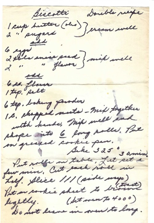 Making cookies seems to be a holiday tradition for most households this time of year. We’re no exception. My husband channels his Italian roots and tackles making a variety of biscotti based on his mother’s hand-written recipe. Although she focused on the traditional anise seed and toasted almond cookies, he has expanded the variety that comes out of our kitchen enormously. This includes a variety of nuts, flavors, and dried fruit. Coffee and chocolate, anyone? Yumm.