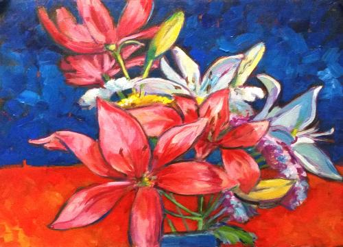 I’ll take another week “off” to paint some of these spring scenes. They have lightened my mood and inspired me during these dismal times. Then I’ll get back to the more serious series. I have four more paintings to complete before the big show in May and June.