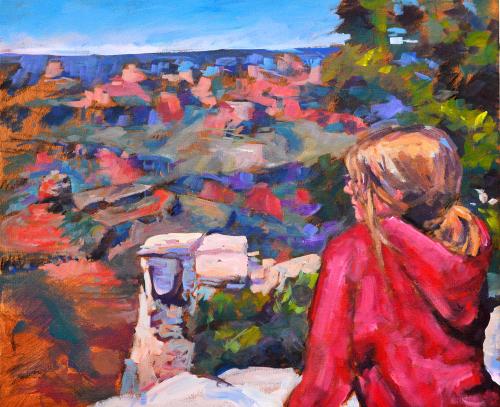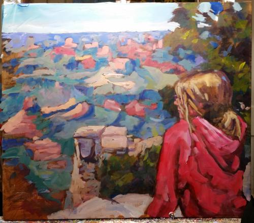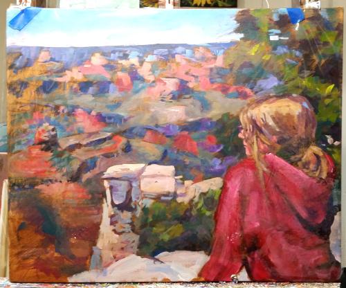 The painting that I’m demonstrating with is titled Far Horizons.  It shows my granddaughter looking out over the Grand Canyon. Not only does the painting depict the distant views of the Grand Canyon, but the deeper meaning of a young girl looking out to the future.