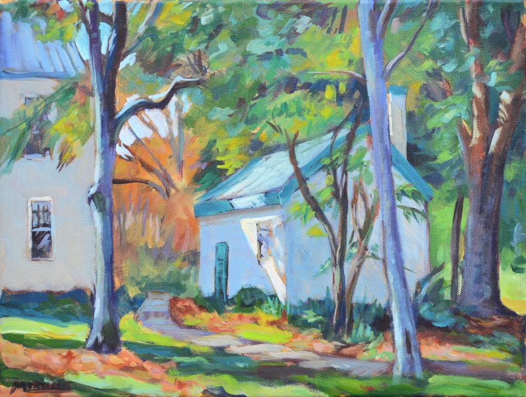 Alley View after two hours. Notice how the shadows have changed. Usually 2 – 3 hours is the most time I have for a plein air painting.