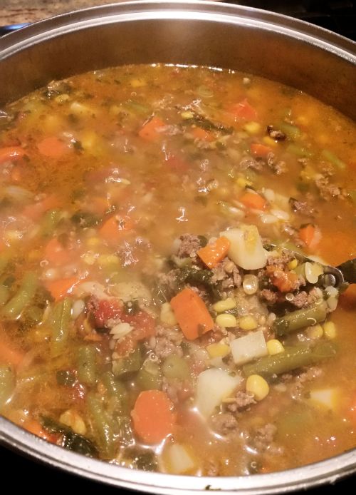 Cold weather seems to bring on an appetite for hot soup. We make a variety of soups here on the farm not only because they are tasty and filling, but it’s also a good way to add those veggies into the diets of some people who claim they don’t like vegetables. We never make small batches of soup around here either so this is as small as it gets (an eight quart pot). Plenty to eat for a couple of days and plenty to share.