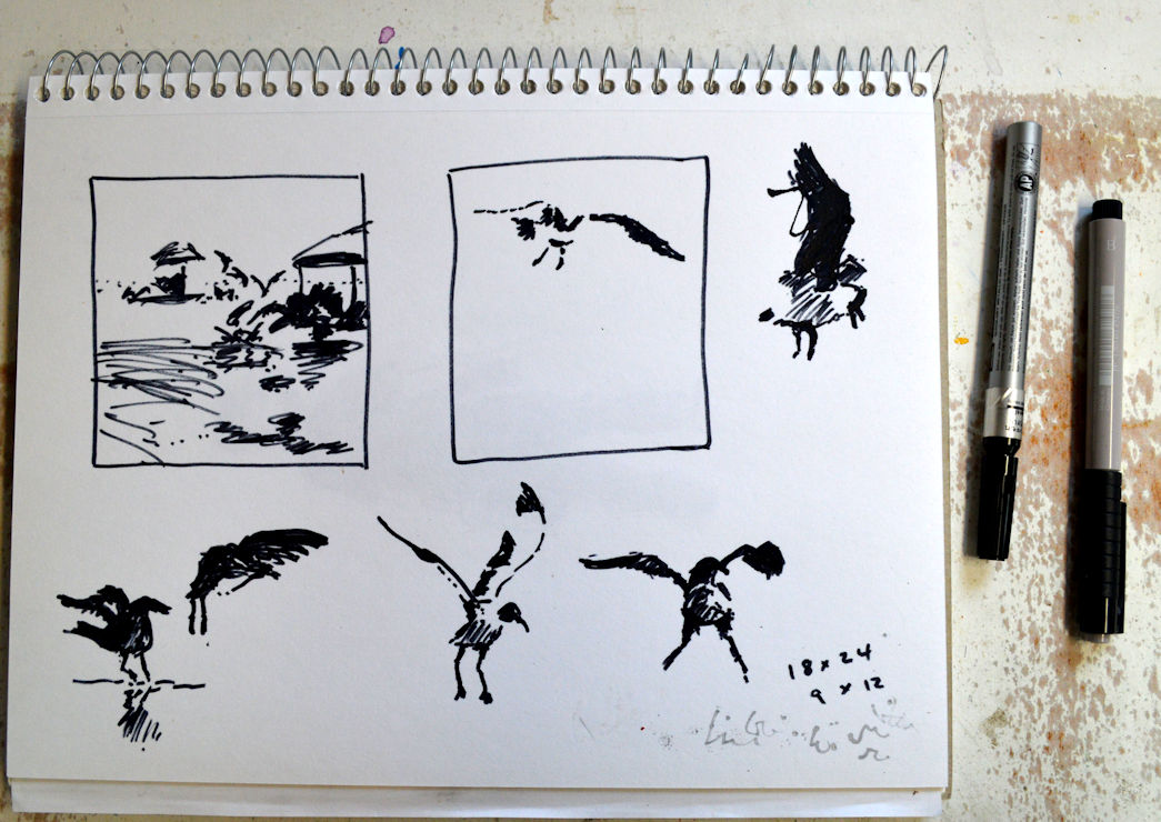 Make it easy. Make it easy to make art. Do you have to clear the children’s homework from the dining table? Drag out all your equipment and easel every time you want to paint? Find a space where you can keep your materials at hand. Set up a corner in the bedroom to work. Use a portable screen if the clutter annoys you. Keep a sketchbook next to your TV chair. Or in your purse or pocket. I’ve often drawn mini-sketches while waiting for dinner or in the theater. If your materials are nearby, you’ll be more likely to use them.