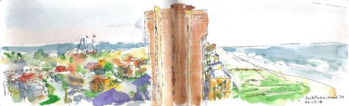 Flooded Arkansas River in Little Rock, sketch Kit Miracle
