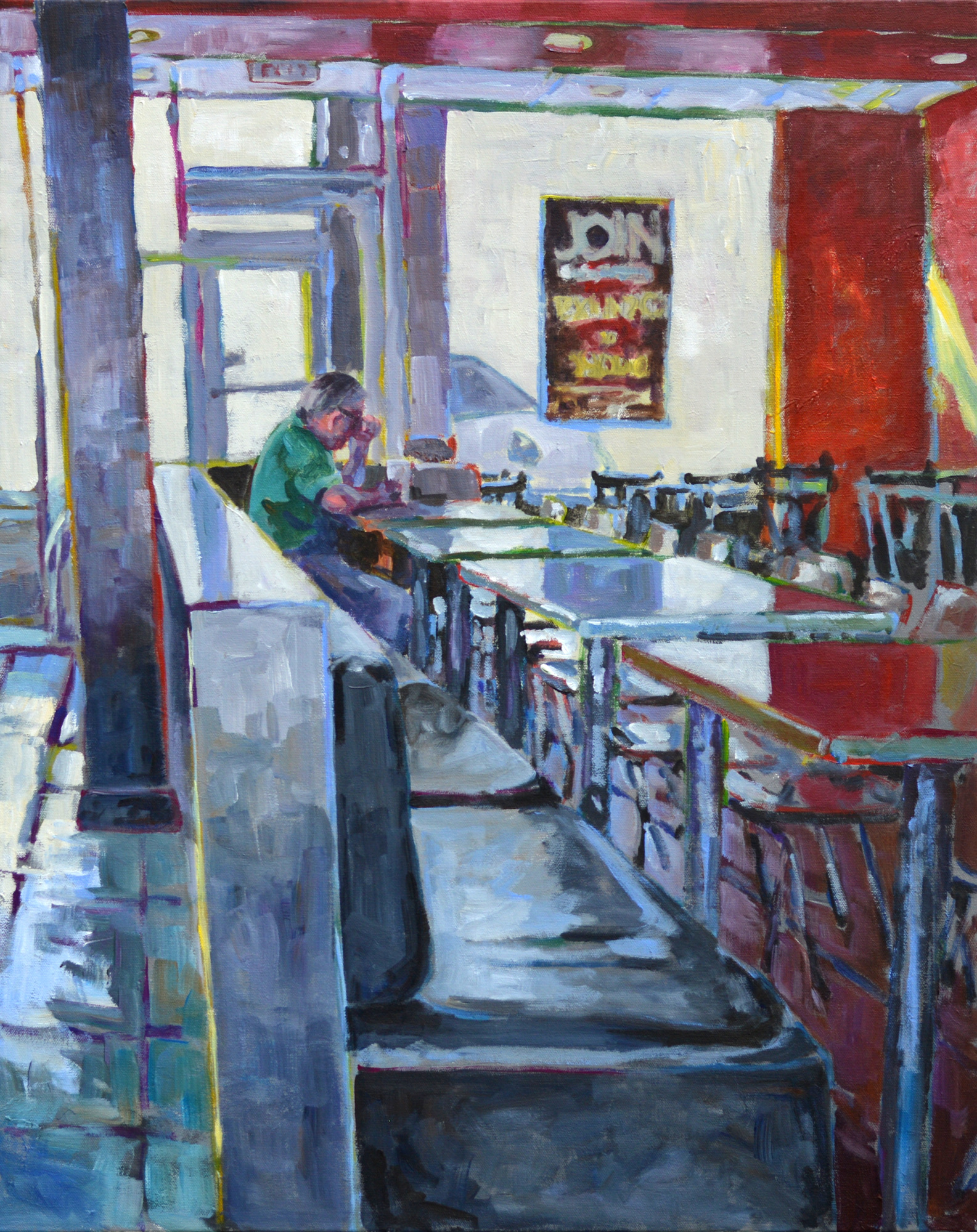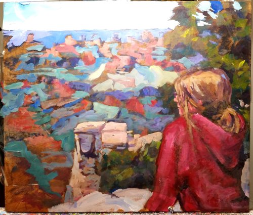 I’ve been taking a break for the past several weeks from working on my current series of paintings Intimate Spaces: Breaking Bread. Although I tend to be pretty disciplined when I’m working on a big project, sometimes I need a respite. Recently I’ve returned to some old themes, particularly western scenes and my travels. Culling through a couple of decades’ worth of old photos, scenes that I may have skipped previously, now draw me in. It doesn’t always have to be the entire picture, just a small portion of it. And I always feel free to change things around.